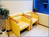 ゆったりと座れるひとりがけの椅子なので、リラックスしてお待ちいただけると思います。診察までこちらでお待ちください。