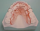 歯が動いて歯並びがキレイになったら、元に戻らないようにリテーナー(保定装置)をつけます。歯が新しい位置に安定するまでは必要です。数ヶ月に1度の割合で通院し、歯並びの状態をチェックを行います。 |